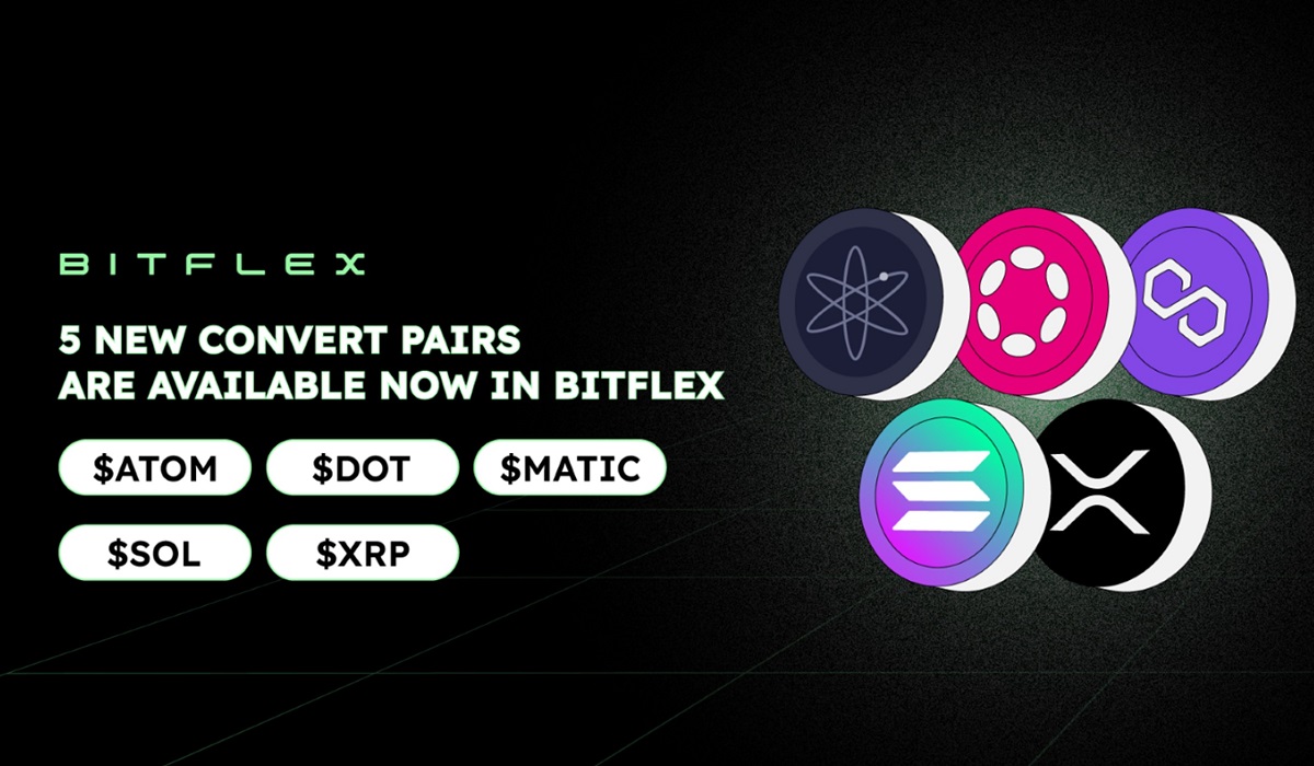 BITFLEX, a leading cryptocurrency exchange, is pleased to add five new cryptocurrency pairs to its platform. The newly introduced pairs are $SOL, $DOT, $ATOM, $XRP and $MATIC.