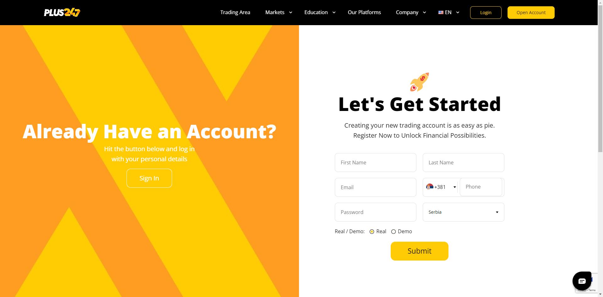 Plus247 trading platform registration and login
